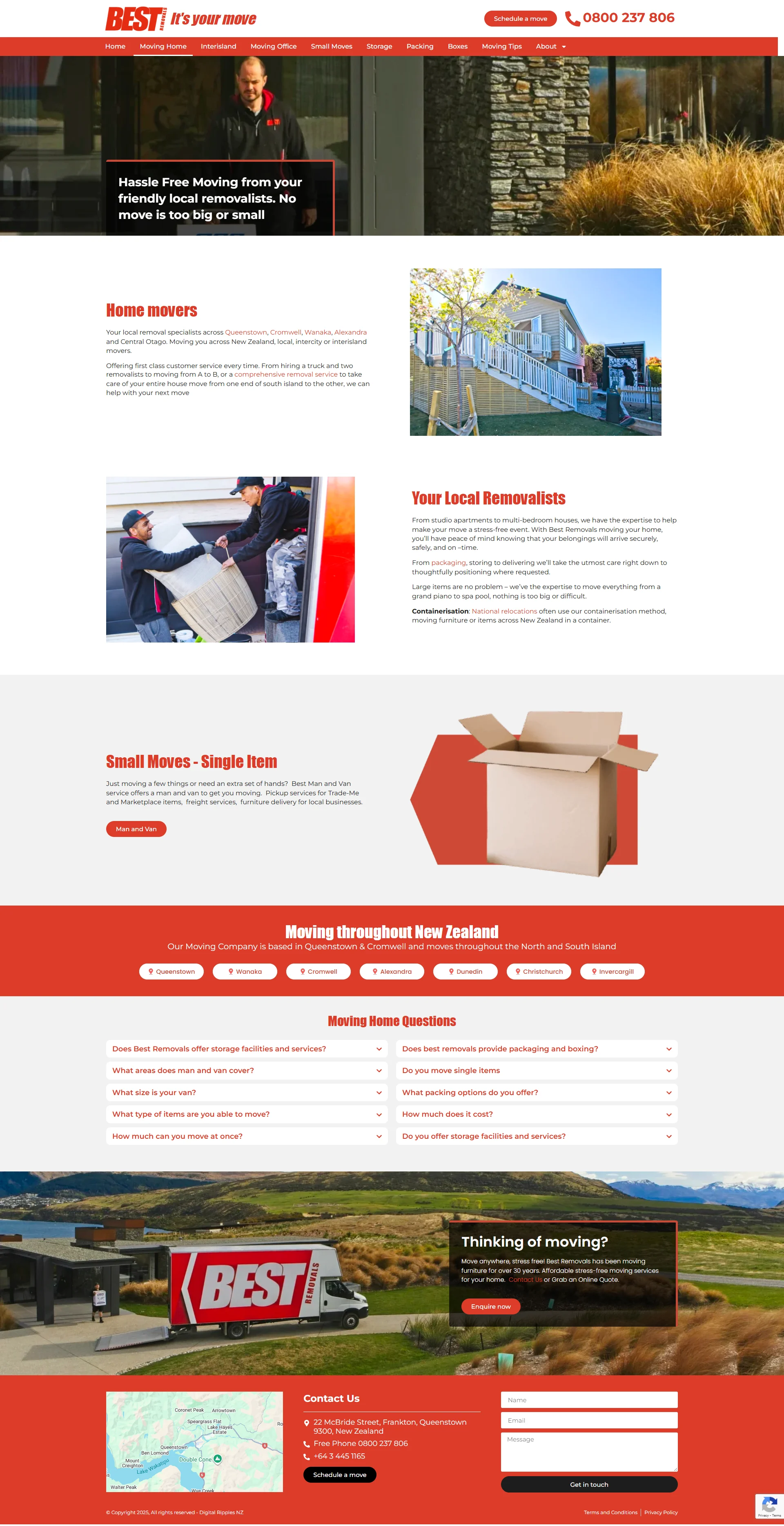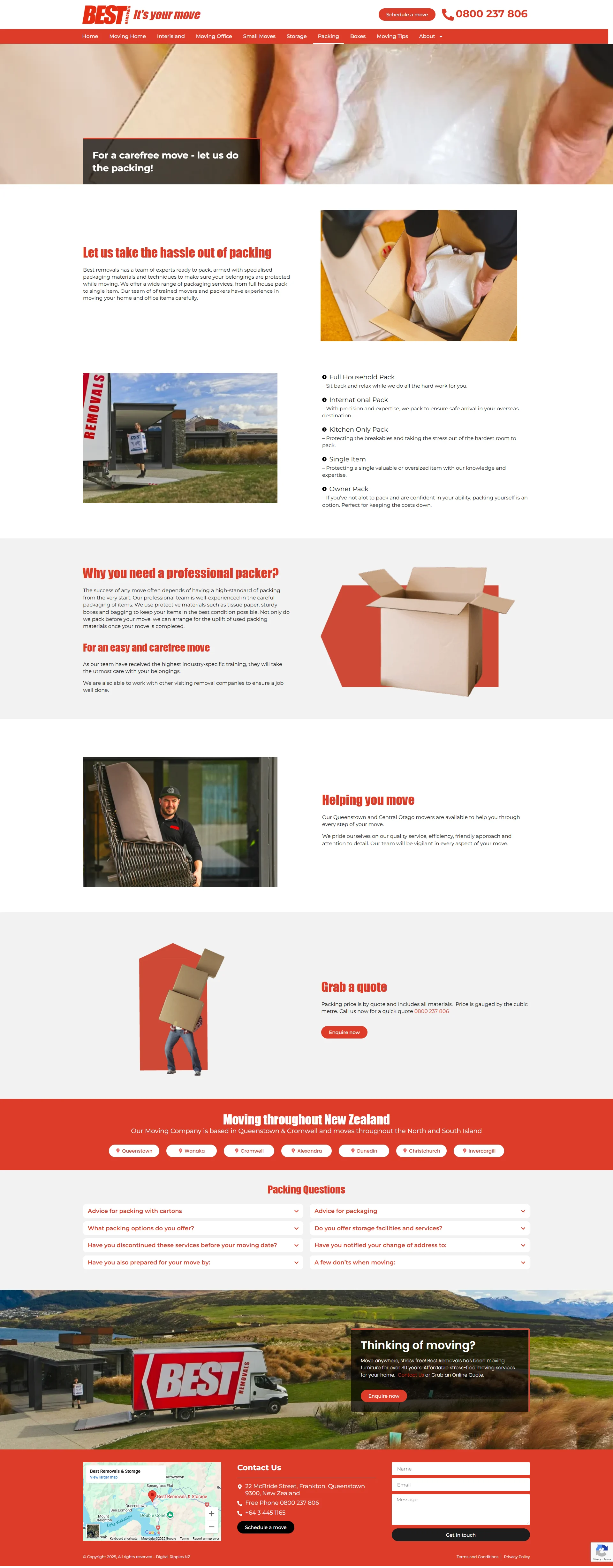 Best Removals & Storage (BRS) is a New Zealand company with over 30 years of experience, dedicated to providing professional moving and storage solutions. The website acts as a comprehensive resource for individuals and businesses, offering a range of services designed to simplify the moving process. From inter-island moves to office relocations, BRS aims to be a reliable partner for all your transport and storage needs.